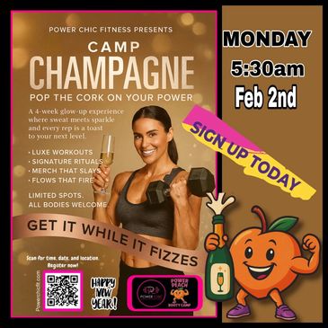 Power Peach Booty Camp is a 4-week guided fitness experience focused on glute, core,arm, strength, confidence, and community.